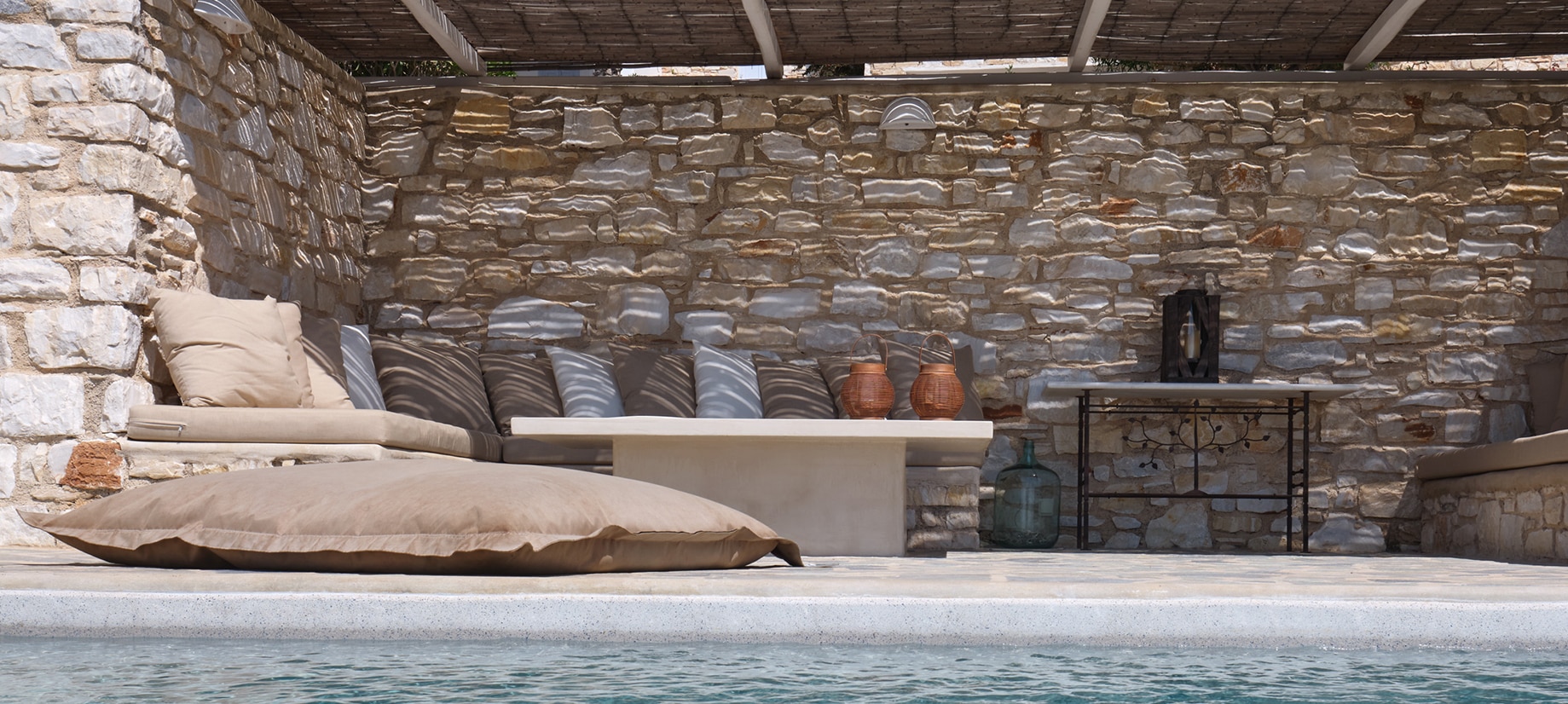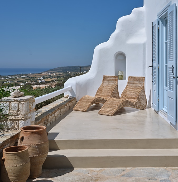 Αυτή η ιδιωτική βίλα στον Δρυό της Πάρου διαθέτει έπιπλα σχεδιασμένα κατά παραγγελία, τα οποία συμπληρώνουν ιδανικά το μοντέρνο σχεδιασμό της και υπόσχονται την ιδανική νησιωτική απόδραση σε ένα πολυτελές καταφύγιο που συνδυάζει άνεση και στιλ.